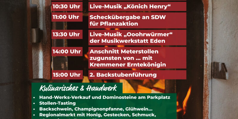 Kommt vorbei, genießt frisch gebackenes aus dem Holzbackofen und erlebt einen Tag voller Genuss und Gemeinschaft.